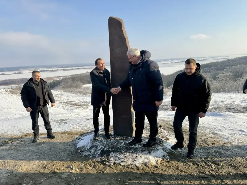 Utenriksminister Espen Barth Eide har i Ukraina avdekket en kopi av Alstadsteinen, som hyller en mann som mistet livet i Ukraina.