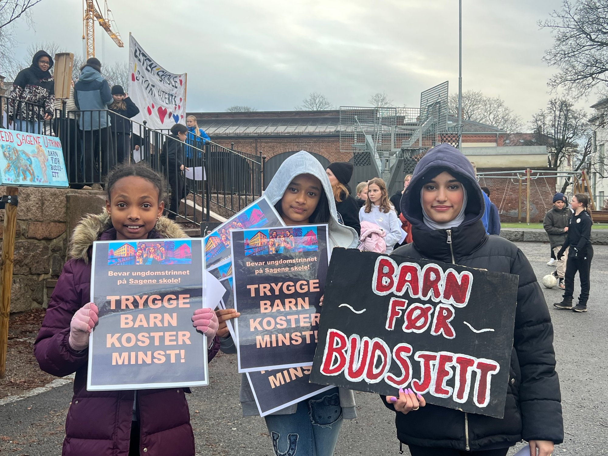 Elever på Sagene skole la fra seg skolearbeidet og streiket i skolegården torsdag ettermiddag.