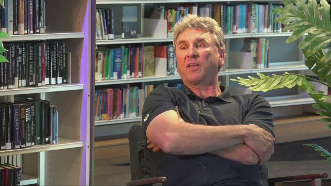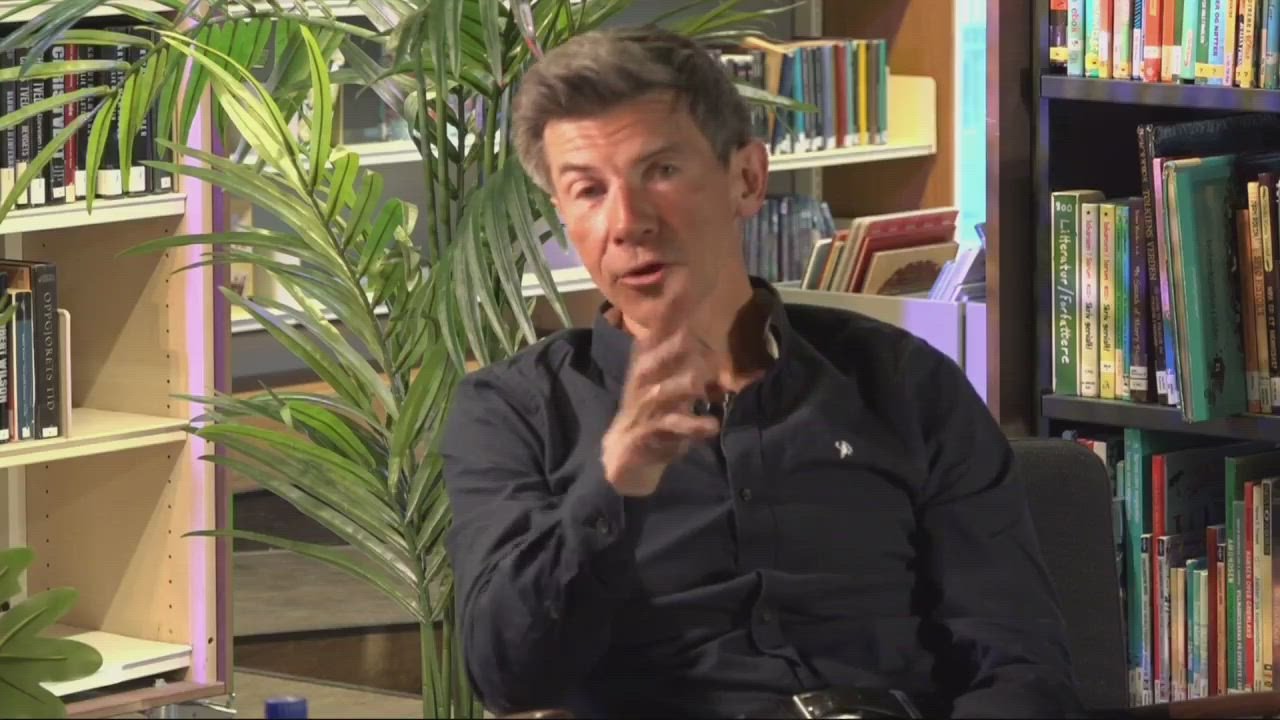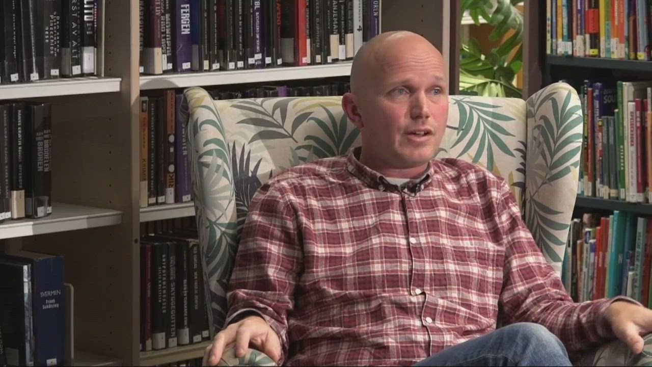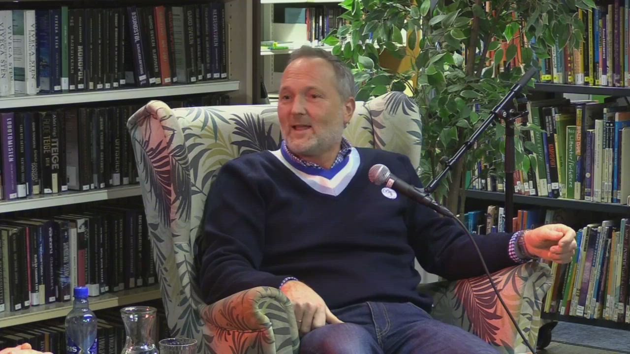 17. des 15:42 Karoline Gregersen Herlofsen i samtale med superlærer Håvard Tjora på Deichman Røa. (Akersposten)
