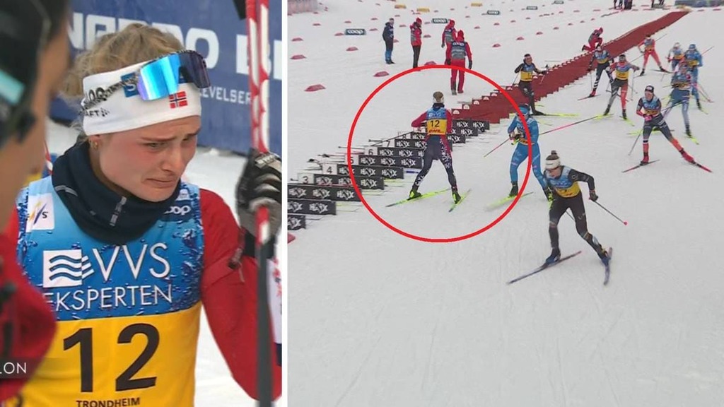 Langrennskometen Julie Bjervig Drivenes var lenge med i kampen, men dÄ ho skulle byte ski gjekk det gale.