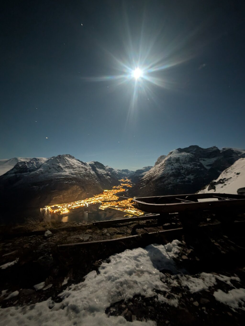 5. des 16:55 Natt til fredag viste månen seg fra en mektig side over Sunndal. Vincent Lockert (33) trosset hålkeføret opp til Hammartippen for å få orkesterplass til det sjeldne synet. (Aura Avis 291b)