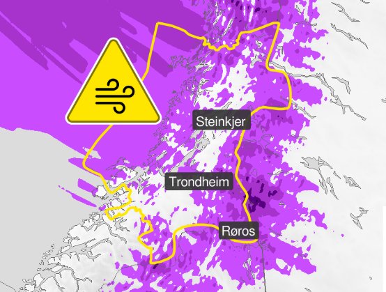 Gult farevarsel for kraftig vindkast i TrĂžndelag.