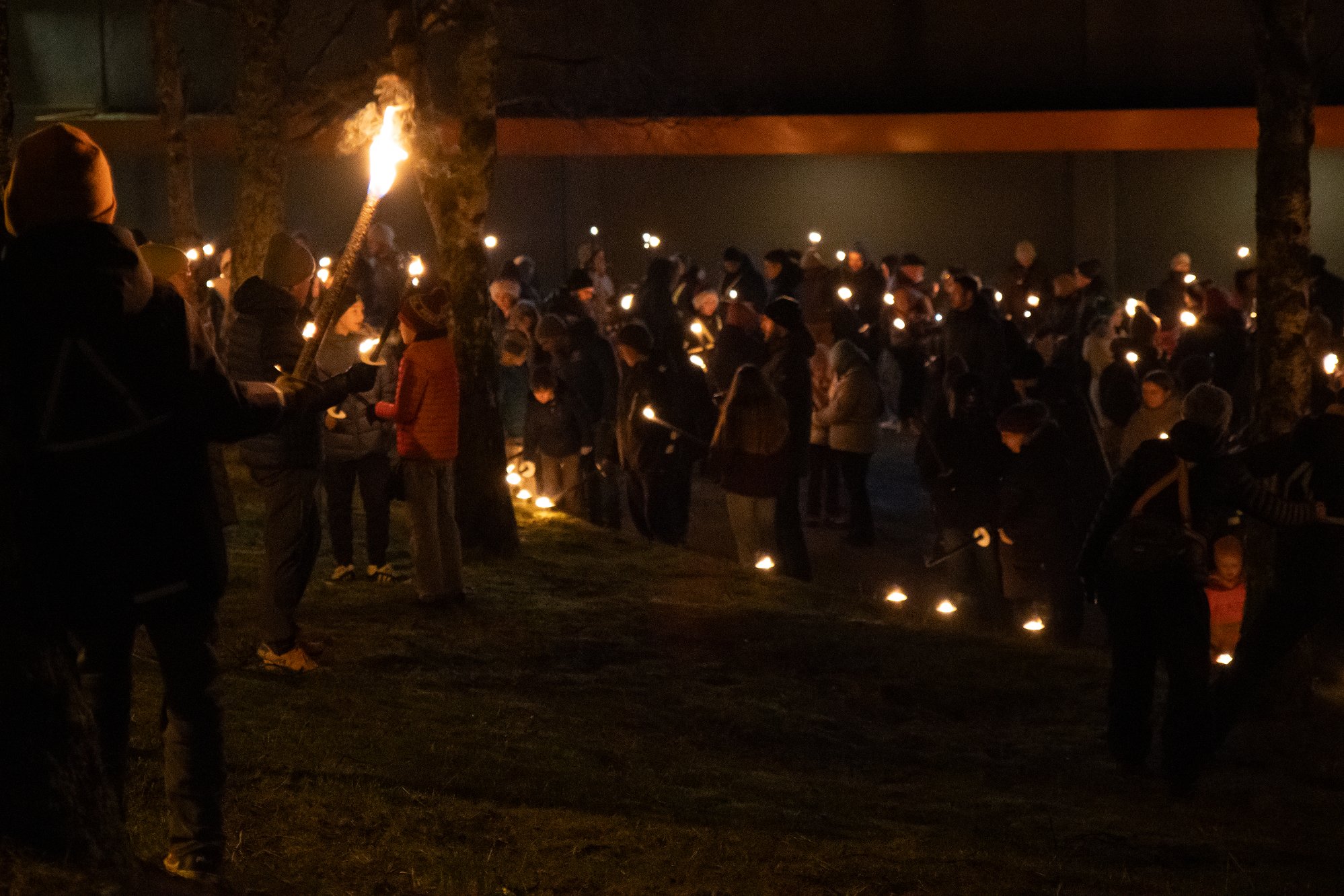 Stjerner og faklar lyste opp BrekkelĂžypa sĂžndag kveld.