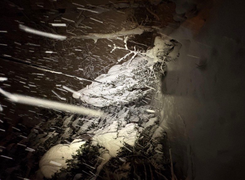 29. des 17:16 Flere store trĂŚr veltet over et privat hyttetak etter at stormen herjet i Nordland i helgen. (AN 195b)