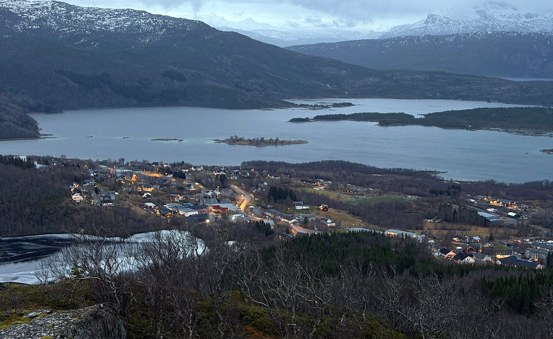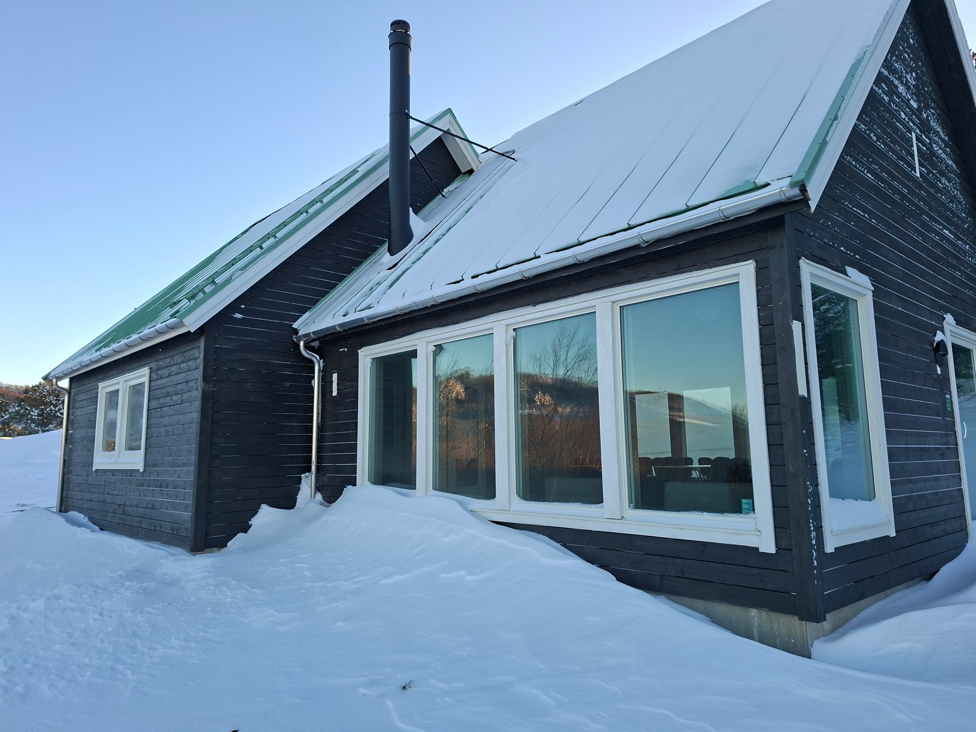8. feb 15:59 Ăverst pĂ„ RĂžnvikfjellet troner hotellet «The Wood». Like nedenfor, i skrĂ„ningen ned mot Skivika ligger en langt mindre ruvende bygning: «Triangelhytta». (AN)