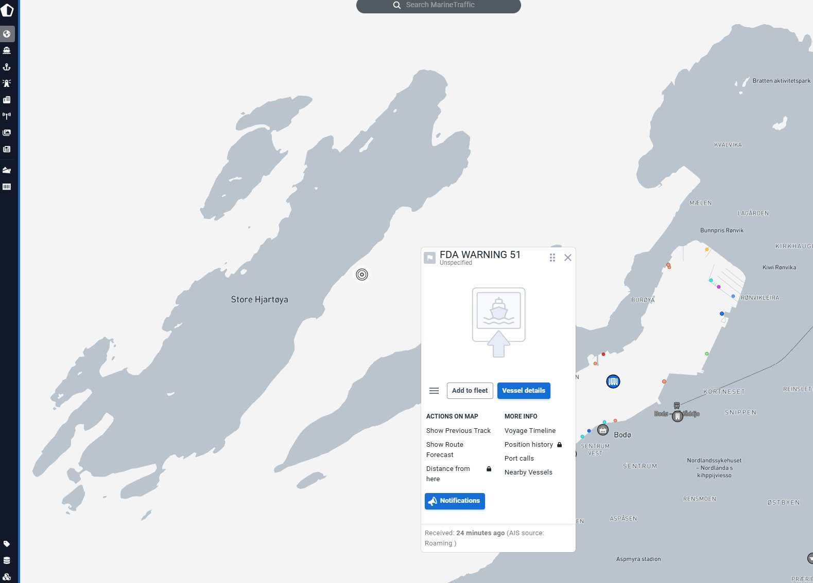 26. jan 18:05 Et AIS-signal har i to mÄneder blitt sendt fra havet Mellom Lille- og Store HjartÞy. (AN 238b)