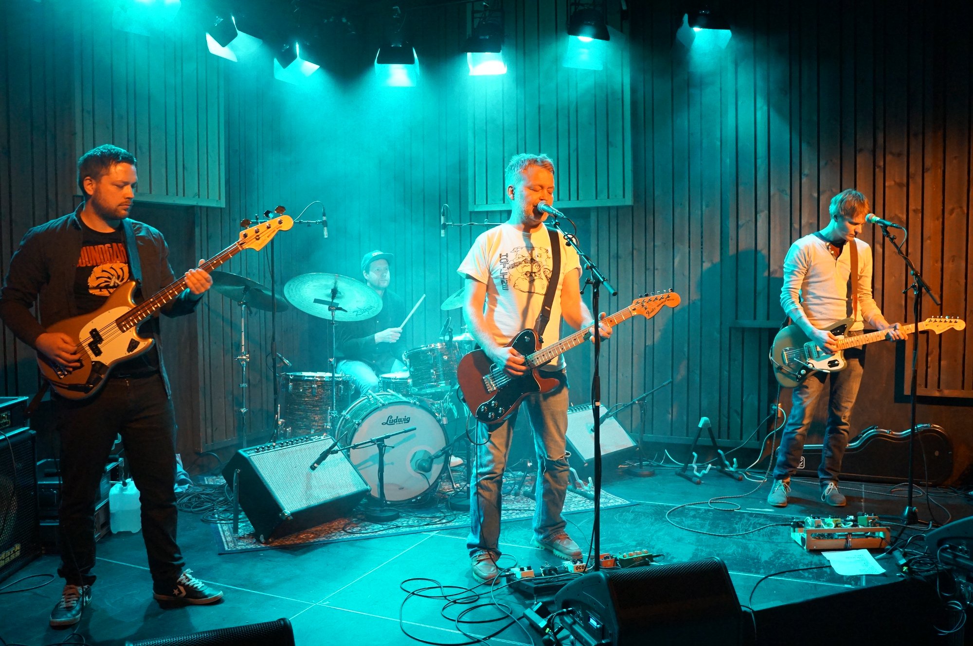 Gutane i bandet «StorefÞss» var usikre pÄ om det ville koma sÄ mange til familiekonserten mÄndagskvelden. Men med smÄtt og stort var kanskje 100 menneske samla i det intime lokalet.