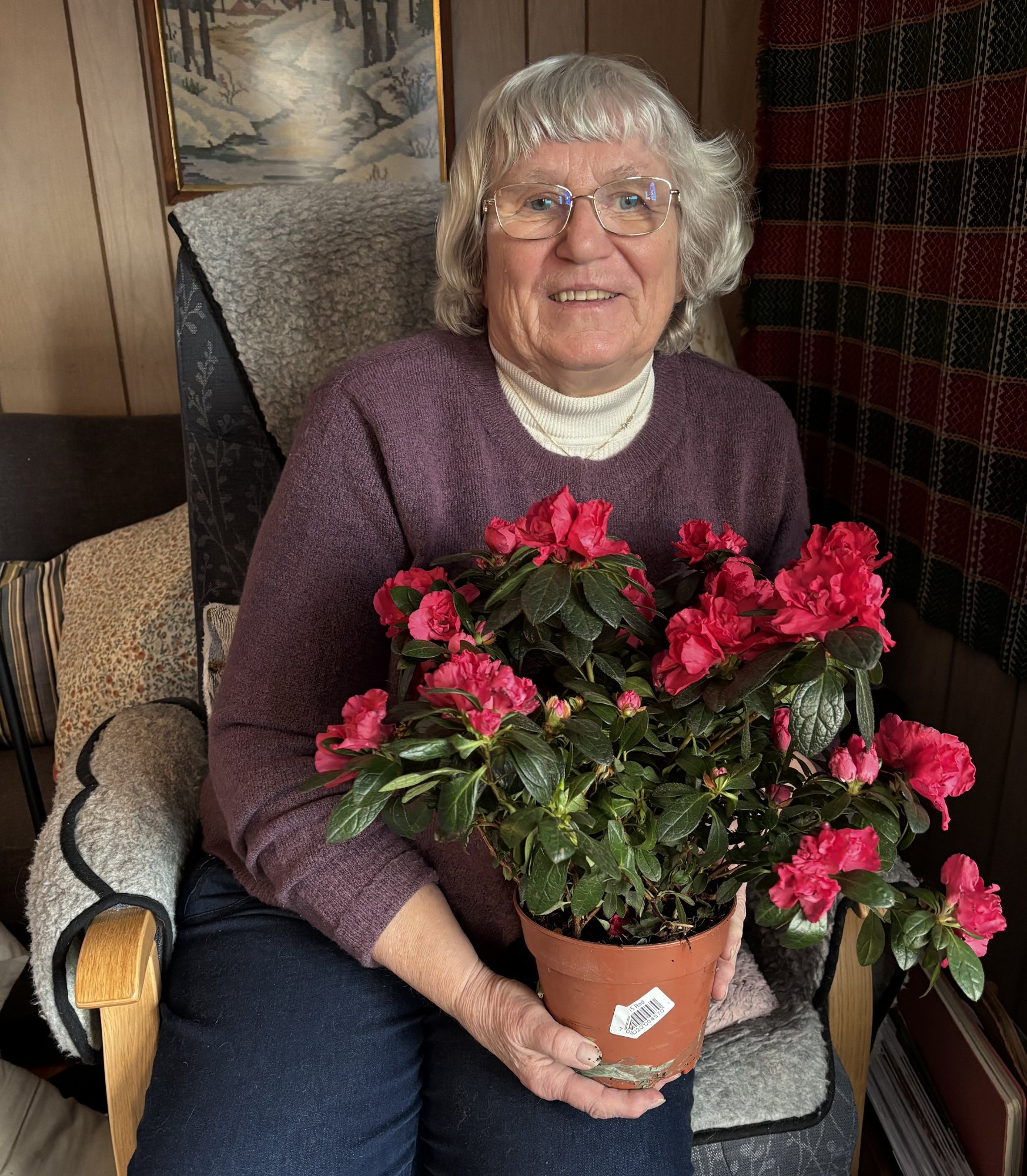 â Hva, en juleblomst til meg? Det var hyggelig, svarer BjĂžrg Irene Nilsen nĂ„r avisa tar kontakt. Hun innrĂžmmer at det har blitt litt mer slitsomt Ă„ stĂ„ grytevakt med Ă„rene, og bare hittil i vinter har det blitt rundt 40 timer.