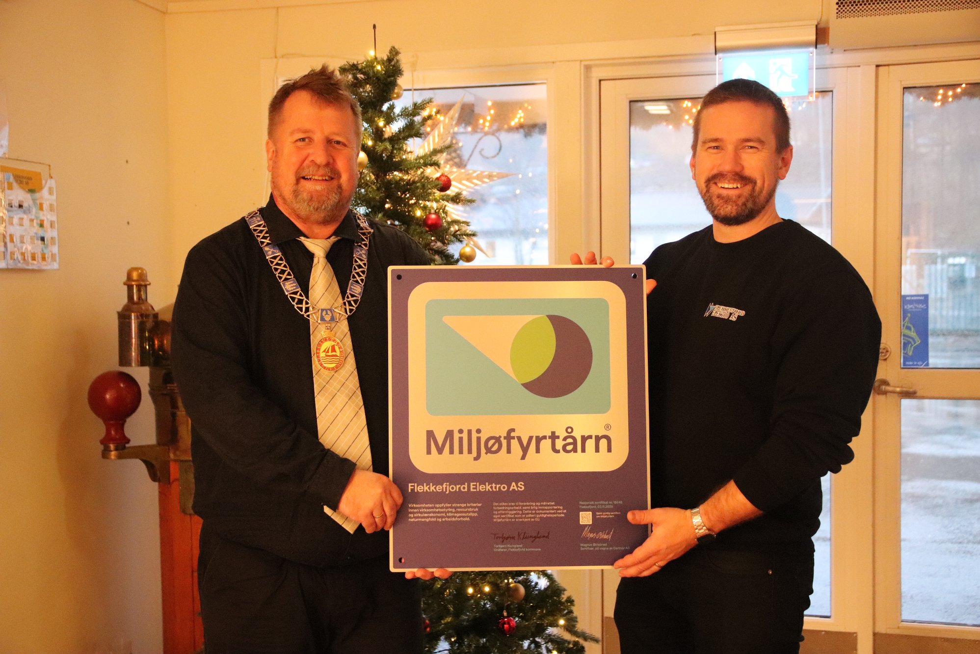 Flekkefjord Elektro opplever stor fremgang pÄ flere omrÄder. Nylig fikk bedriften et tydelig bevis pÄ sitt miljÞengasjement, da de mottok MiljÞfyrtÄrn-plaketten.