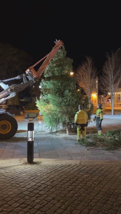 FĂ„ timer etter at det ble oppdaget at juletreet i Ăvre Park var skĂ„ret ned igjen, er det heist pĂ„ plass igjen. Riktignok blir treet lavere og lavere.