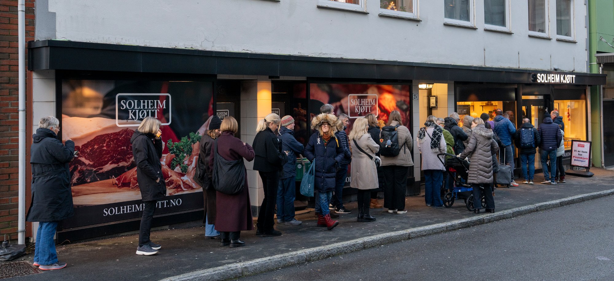 Det er to dager igjen til julaften. PĂ„ Solheim KjĂžtt er kĂžen lang.
