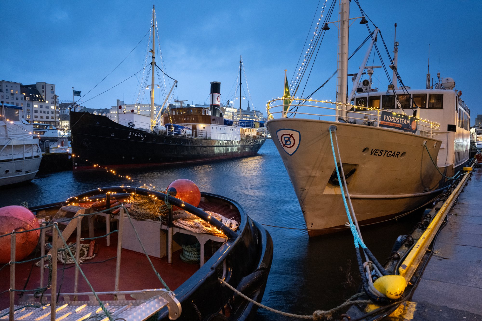 22. des 22:45 For fÞrste gang ligger alle de historiske fartÞyene innerst i VÄgen. Men havneleien er skyhÞy. (BA 276b)
