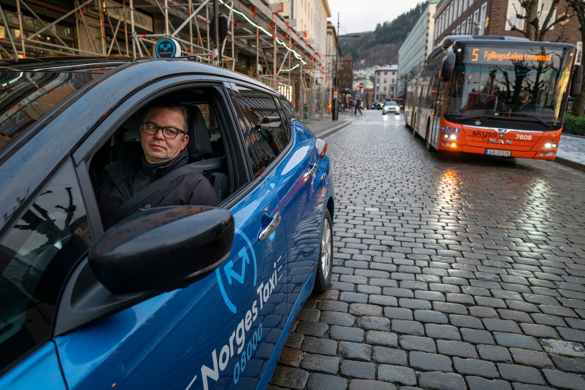 4. jan 22:21 Det florerer med taxier som har nesten ingen steder Ä stÄ. TaxisjÄfÞr Martin Eide syns ikke det er sÄ rart at det blir kaos. (BA 256b)