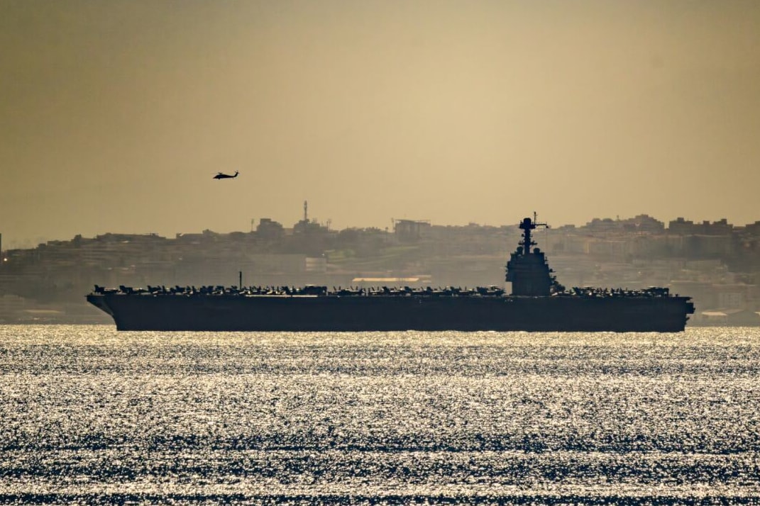 USS Gerald R. Ford ankom Middelhavet ved 13-tiden fredag. Om tre-fire dager kan krigsskipet vĂŠre i Suezkanalen.