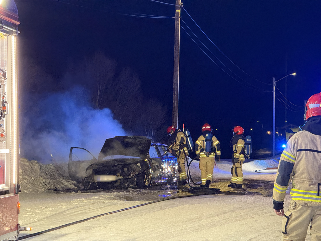 30. nov 21:00 En person sjekkes av helsepersonell etter Ă„ ha inhalert rĂžyk i forbindelse med en bilbrann. (BLV 344b)