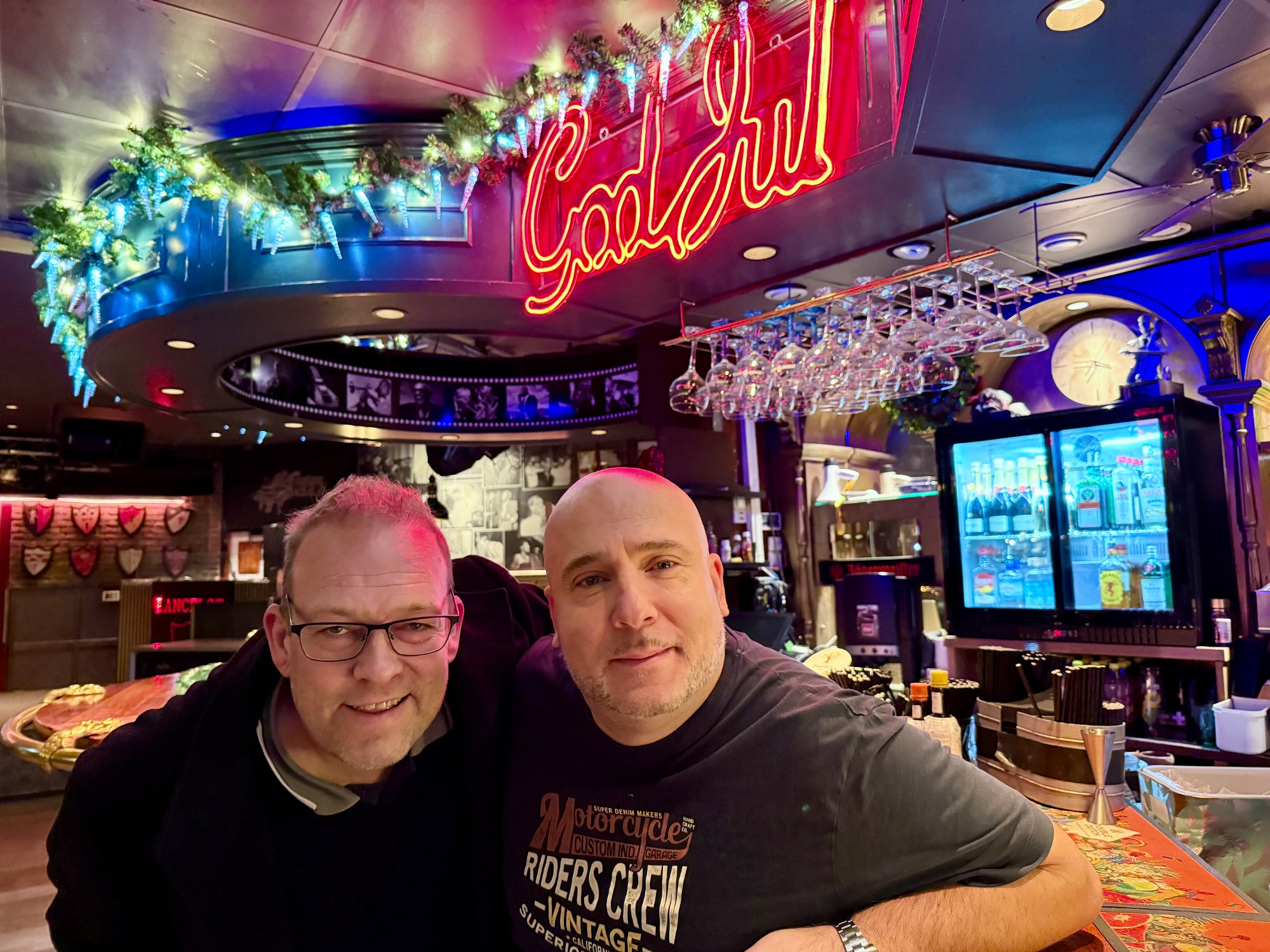 Thomas (51) og Frank Bø (76) feirer julaften på utestedet Lancelot i Asker. – Det er veldig hyggelig å ha dem her, sier daglig leder Denis Menoski.