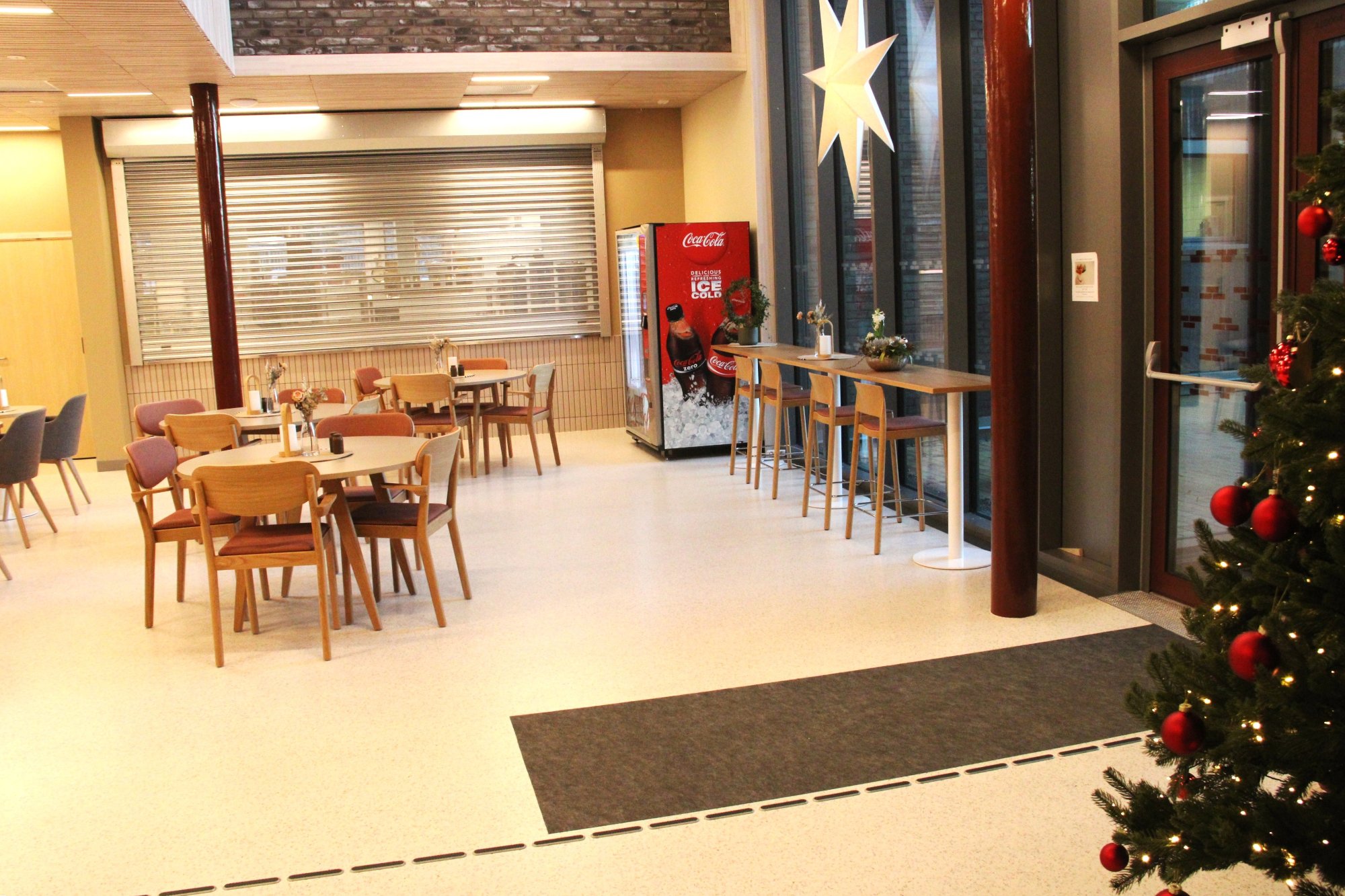 Foreløpig er det lite som minner om kafé ved småborda i foajeen på det nye helsesenteret på Vikeså.