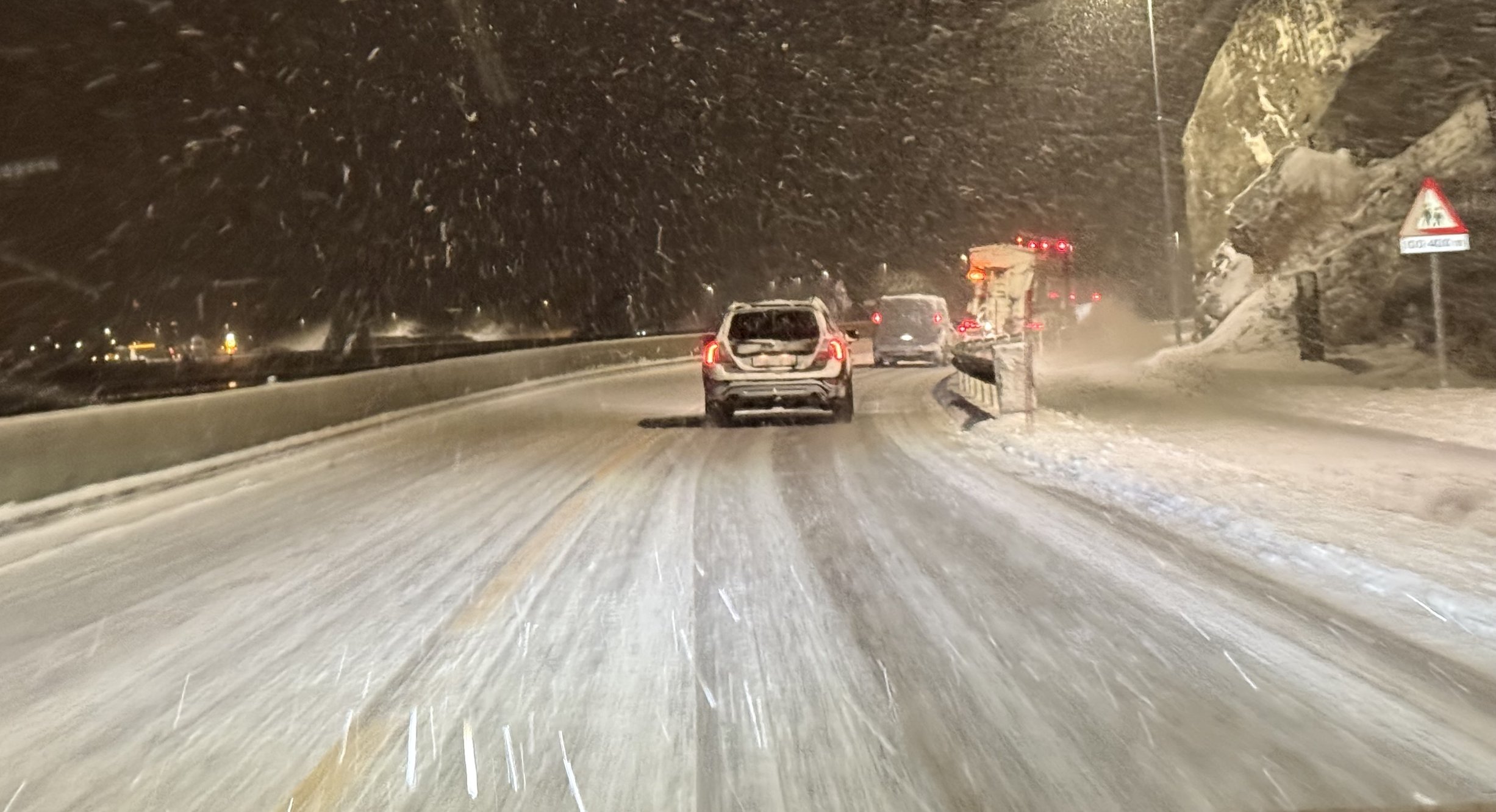 Det har snødd godt de seneste timene, og brøytemannskapene jobber iherdig for å holde veien åpne.