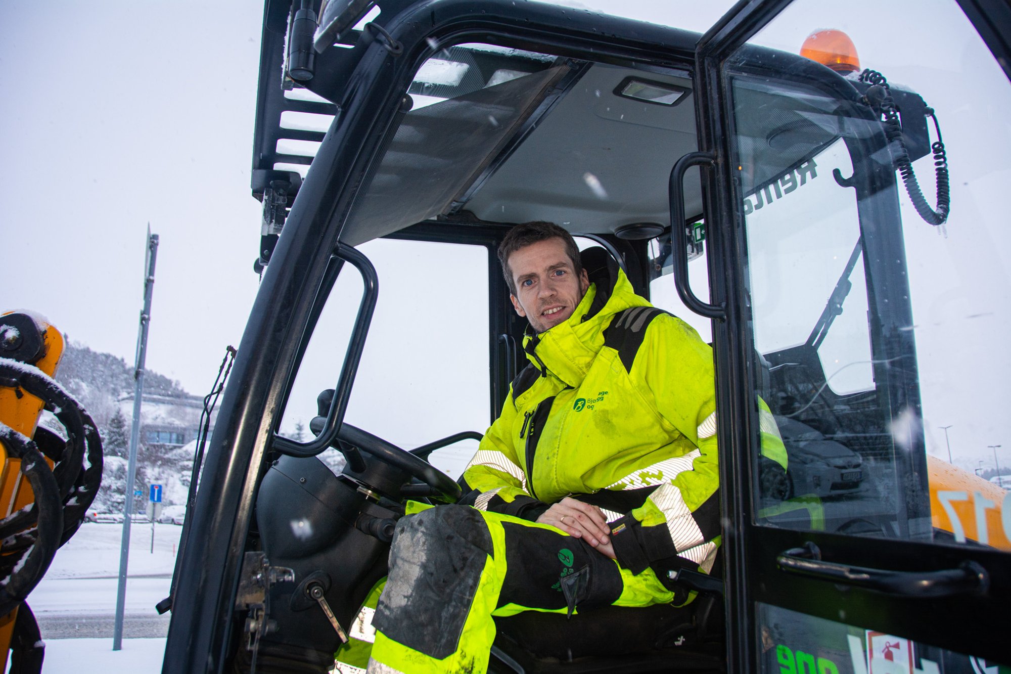Det nærmer seg 12-timersvakt for traktorsjåfør Sindre Vignes, som er ute og brøyter gater og veier i Eigersund.