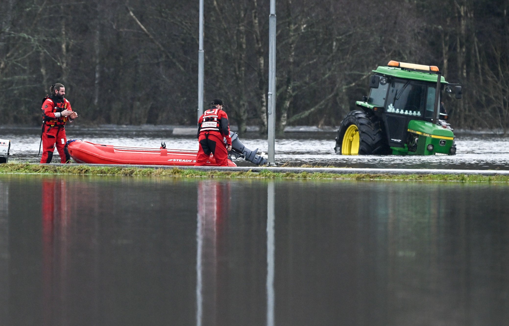 Det er nå 15 centimeter vann på vei inn til Øyno, skriver Sokndal kommune på sine sider. Brannbil avslutter transport til og fra. Det er ventet at vannet synker videre de neste timene. Innbyggere de neste timene må være oppmerksomme, ikke alle personbiler vil håndtere 15 centimeter i vannstand. Generelt vil ordinære personbiler passere på 10 centimeter vannstand.