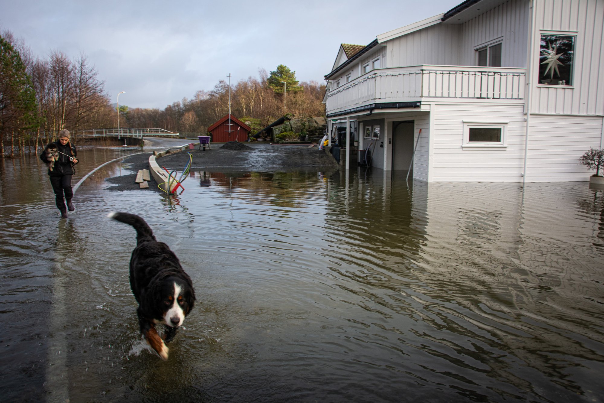 20. des 19:21 Anne Berit Lindland Hansen og ektemannen Per Inge Hansen hadde akkurat fått ryddet og tørket opp etter forrige flom. Så kom vannet rasende inn i garasje og kjeller igjen. (Dalane Tidende 302b)