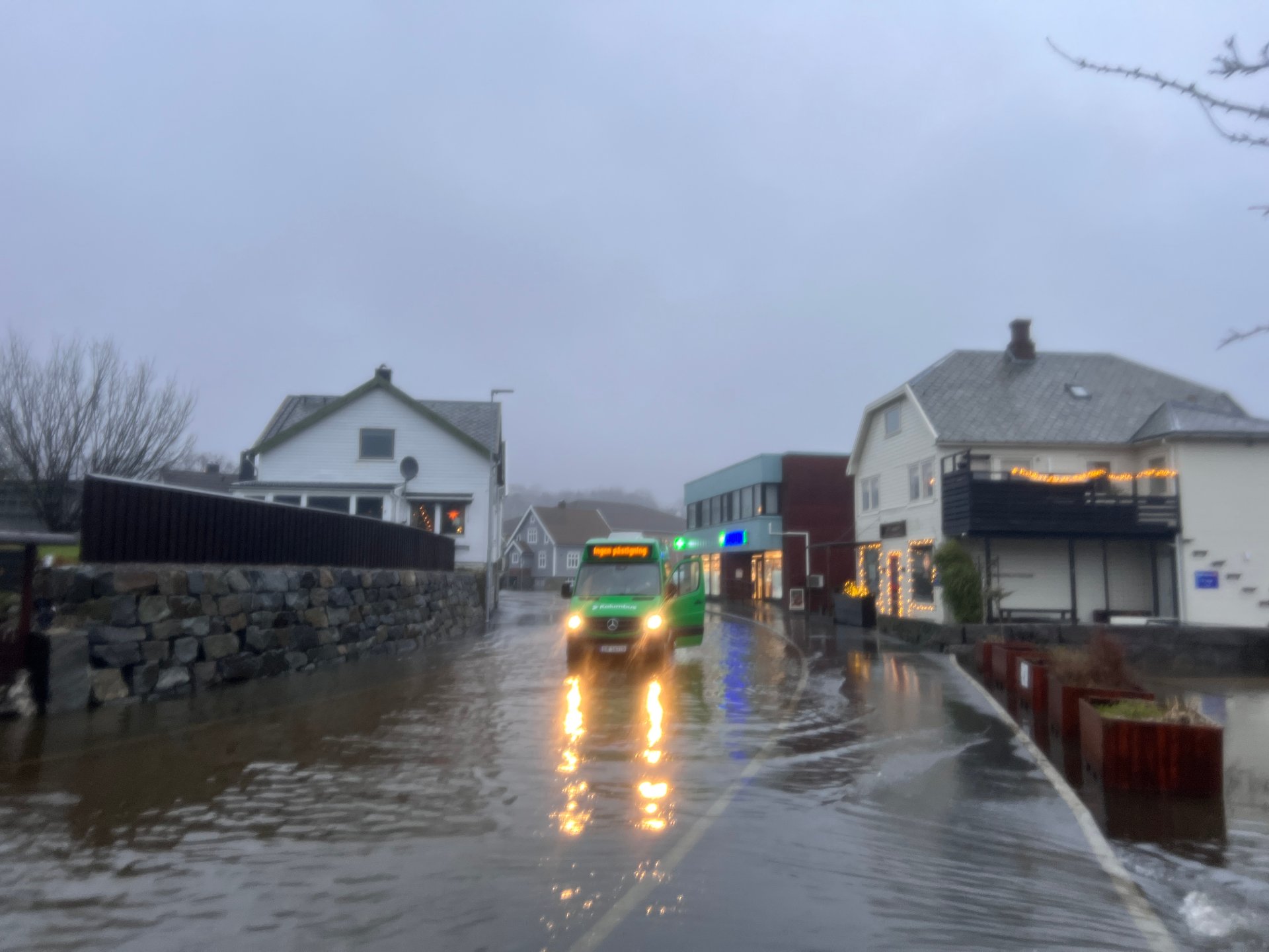 15. des 11:50 Kraftig nedbÞr fÞrte til store vannansamlinger pÄ veien mellom BÞesenteret og SkÄrabrekka. En bilfÞrer oppdaget ikke vannmengden fÞr det var for sent og mÄtte evakuere. (Dalane Tidende 319b)