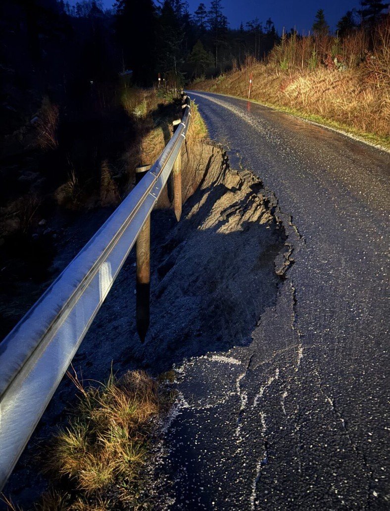Klokka 21.10 mandag kveld meldte Vegtrafikksentralen om et jordskred pÄ E39 rett nord for Brynneslandtunnelen.