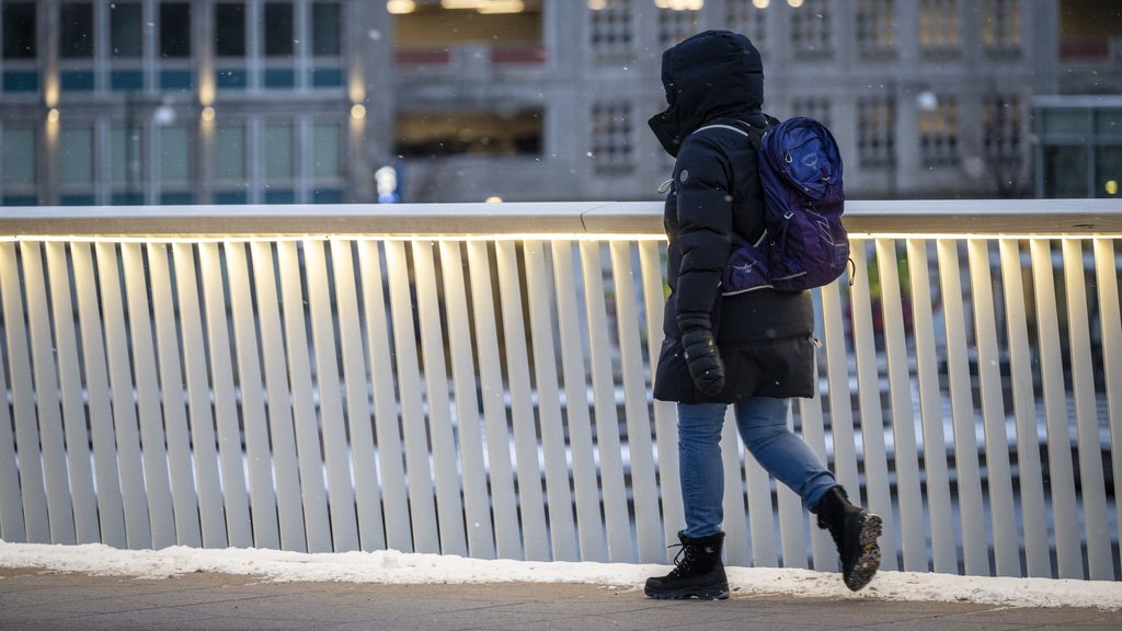 15. jan 7:36 Folk stopper, filmer og peker. Maskinen som holder bybrua bar vekker oppsikt i snĂžvĂŠret. (DT 191b)