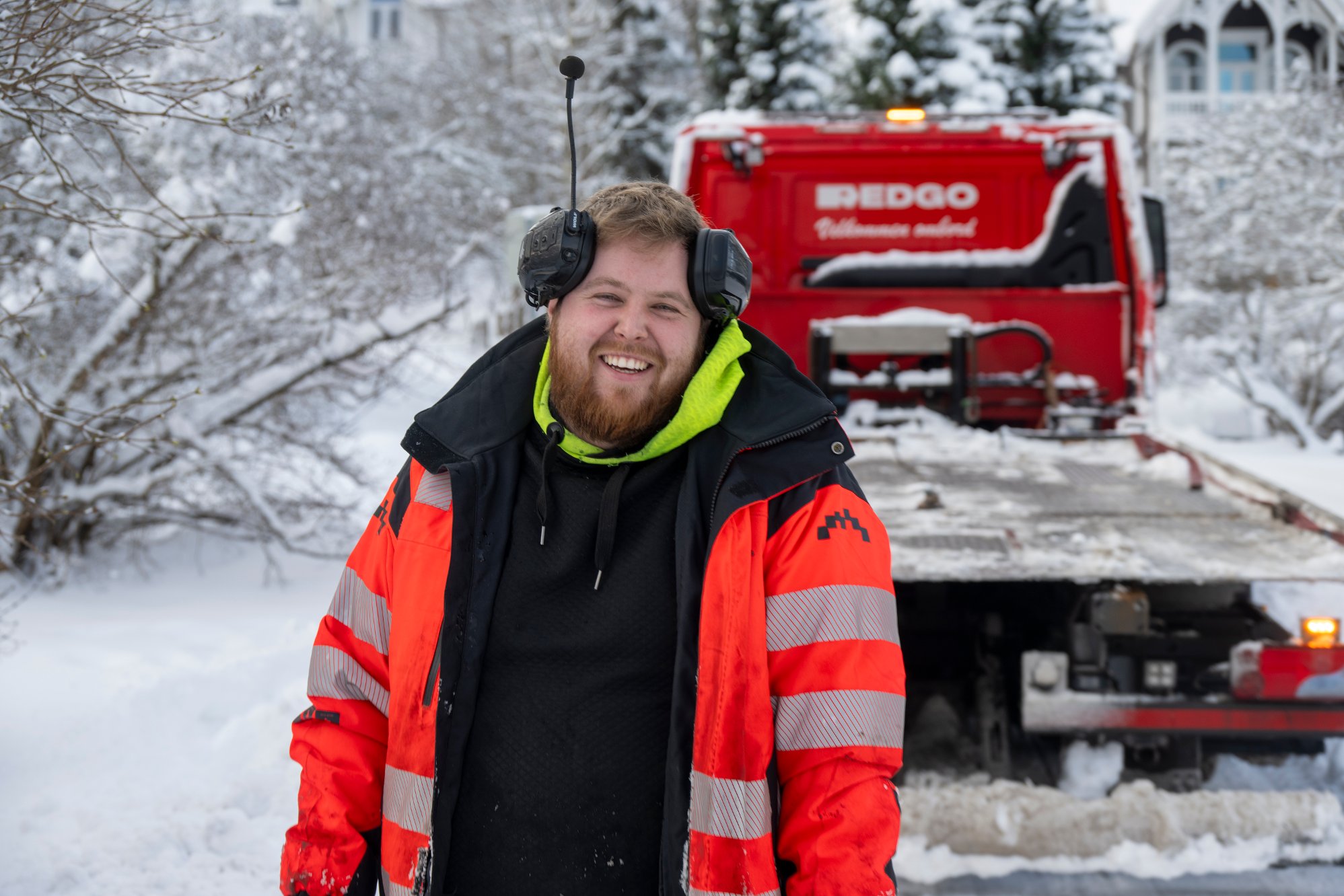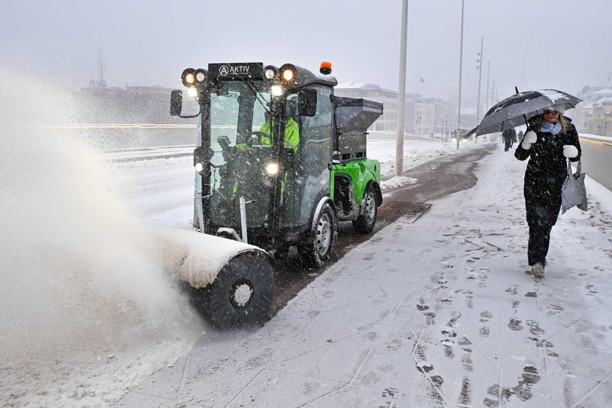 Folk stopper, filmer og peker. Maskinen som holder bybrua bar vekker oppsikt i snĂžvĂŠret.