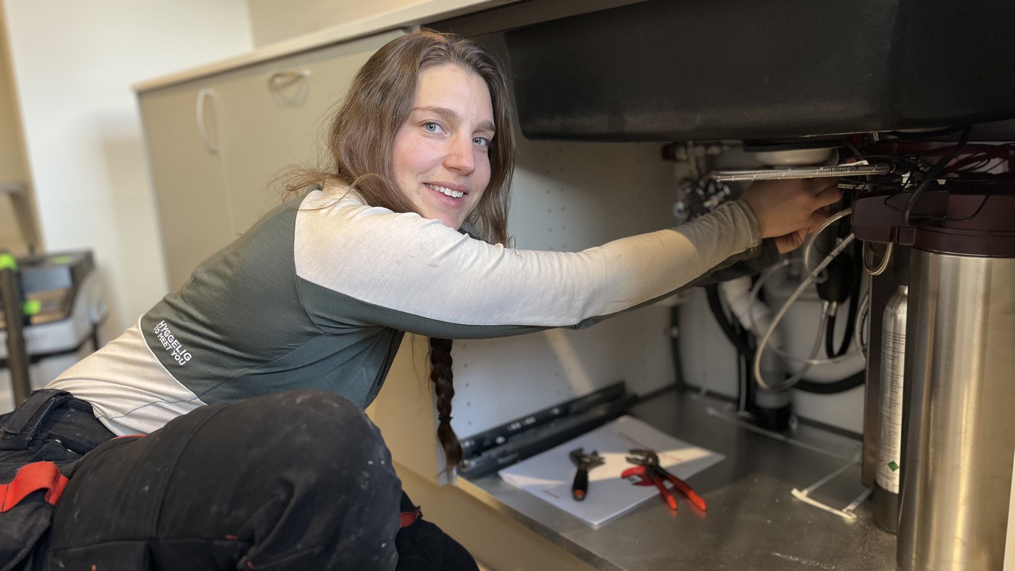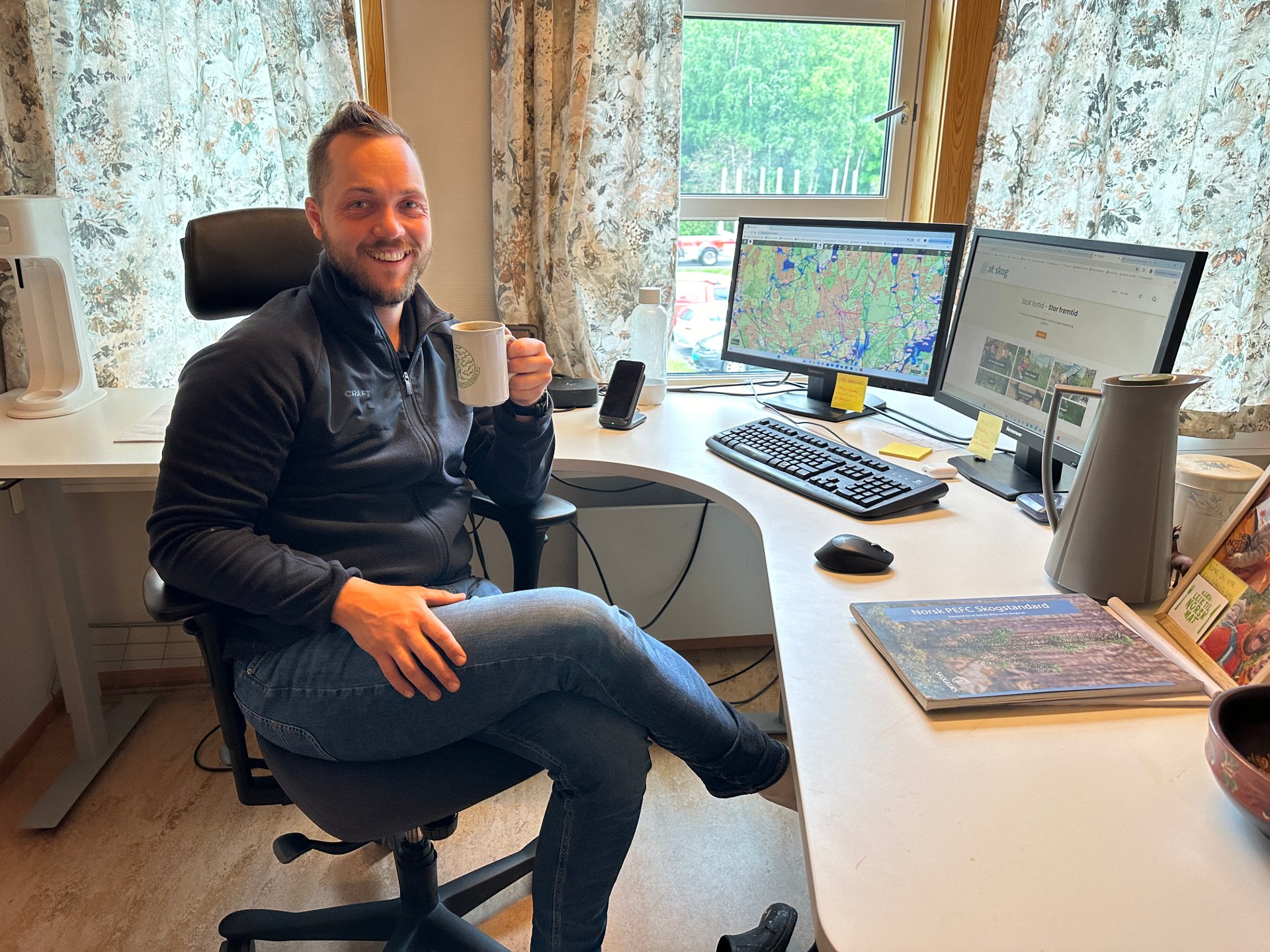 Den nye butikksjefen på Bunnpris har funnet seg godt til rette i Drangedal, både bak kassa og i sitt nye hjem.
