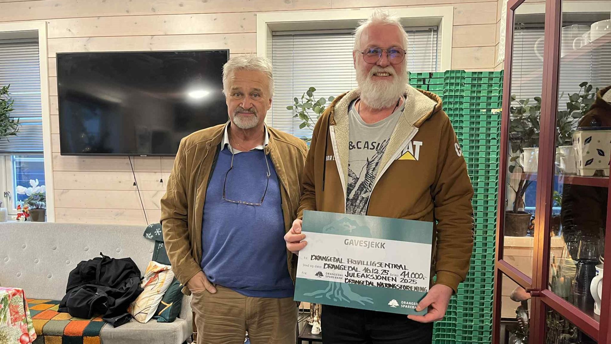 Medlemmene av Drangedal nÊringsforening har samlet inn penger til Frivilligsentralen. Det blir satt pris pÄ.