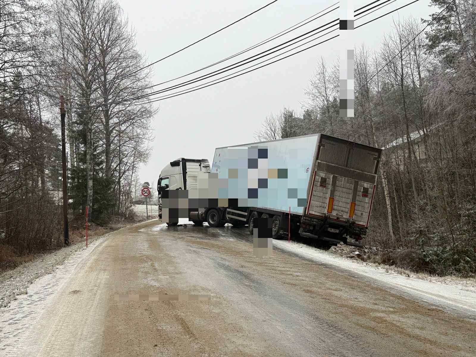 27. nov 11:21 En trailer har kjĂžrt i grĂžfta like forbi Bostrak bensinstasjon. (Drangedalsposten 353b)