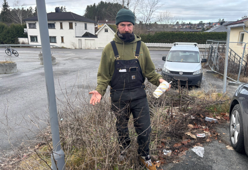 26. nov 4:00 Daniel Marthinsen (32) har sett seg lei pÄ at skoleelever kaster sÞppel rett pÄ gata etter handleturer i friminuttene. (Eikerbladet 273b)
