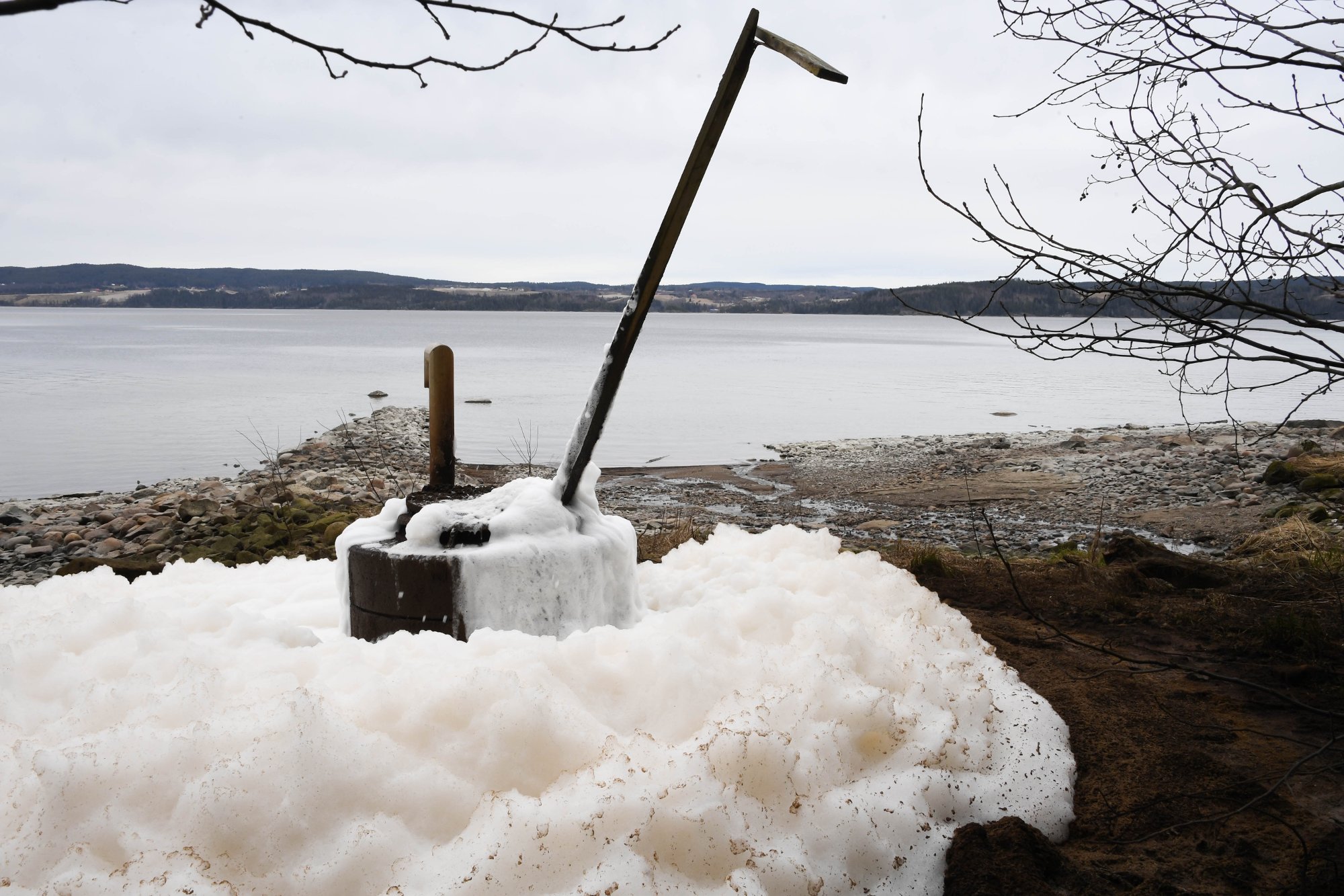Kommunen er i gang med å lete etter hvorfor det kommer hvitt skum opp av ledningen nedenfor Flateby renseanlegg.