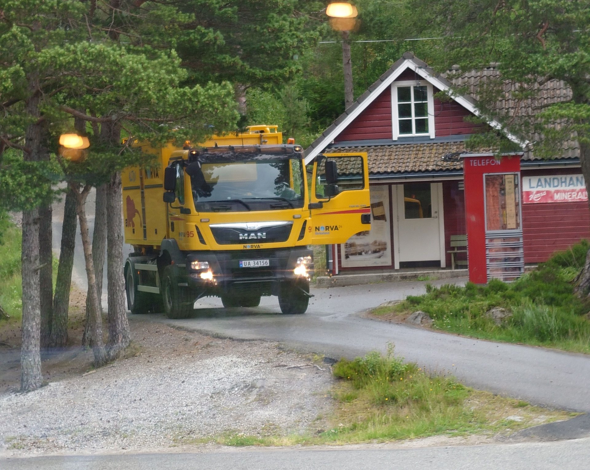 Klokka 00.25 fekk politiet telefon frå nokre som fortel at bilen på tunet i Dalavegen i Bremanger er påkøyrd, og at føraren som krasja framstår rusa.