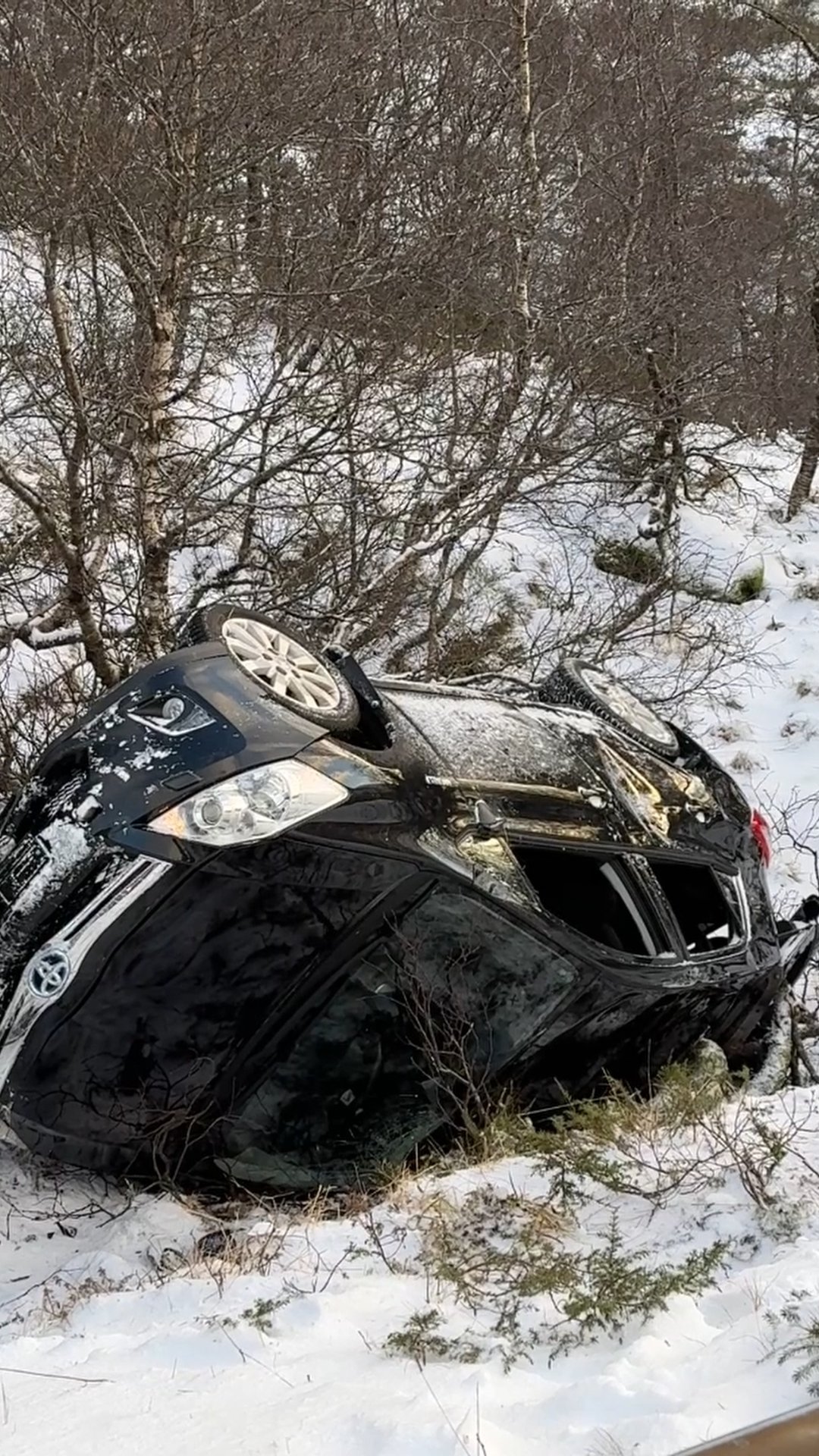 29. des 9:31 Ein bil med tre personar har køyrt av vegen og hamna på taket på sørsida av Magnhildskartunnelen. (Firdaposten 660b)