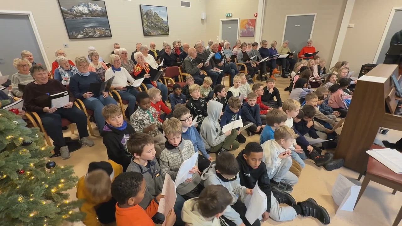 10. des 12:44 Ein klasse med born var tysdag med på songøvinga til seniorkoret Sangglede. Slikt blir det julestemning av. (Firdaposten)