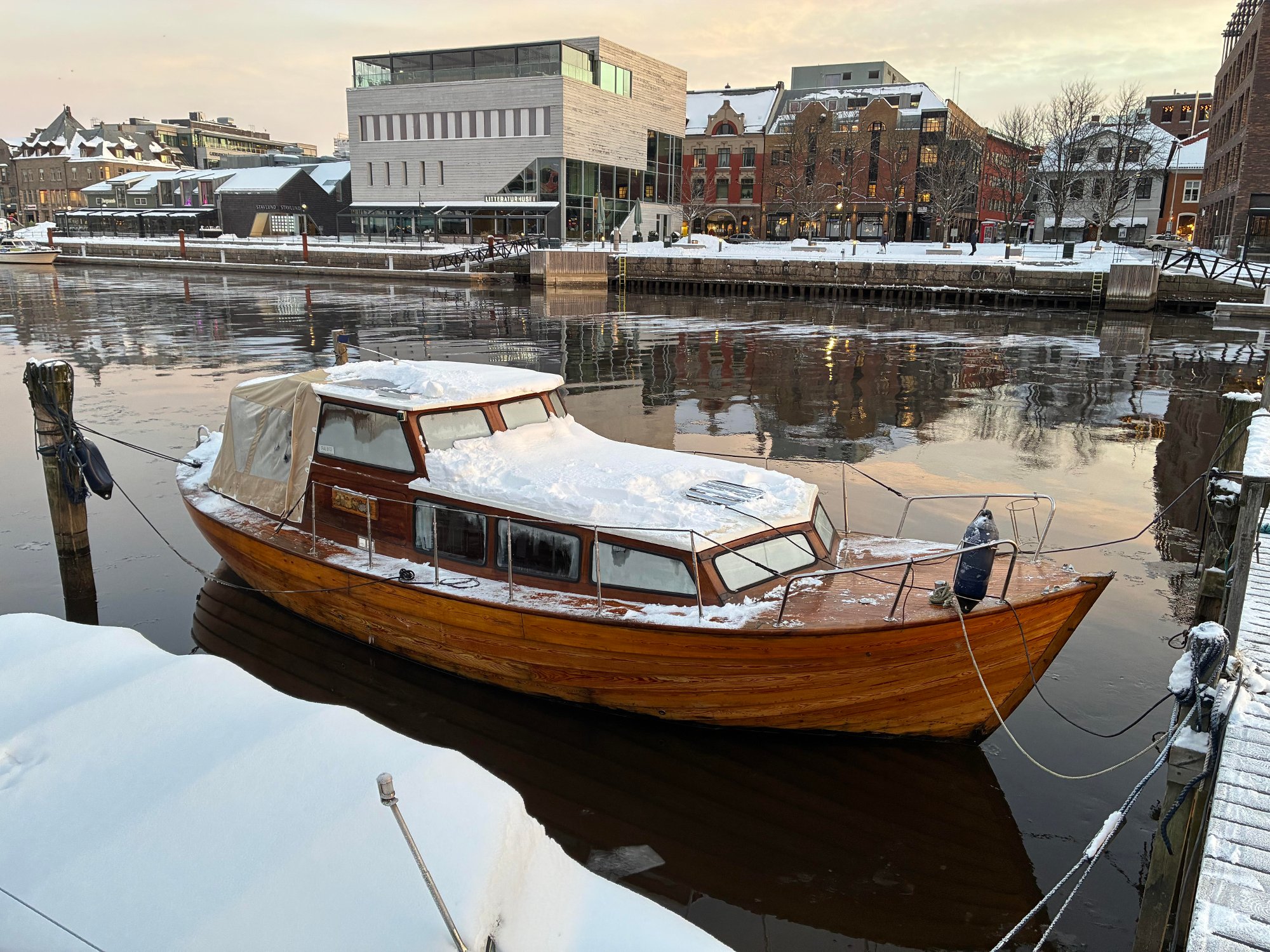 12. jan 15:06 TrebÄten som var i ferd med Ä synke ved BÄthusteatret sÞndag ettermiddag, flyter nÄ fint pÄ vannet. Eieren av bÄten fÄr skryt av brannvesenet. (FB 275b)