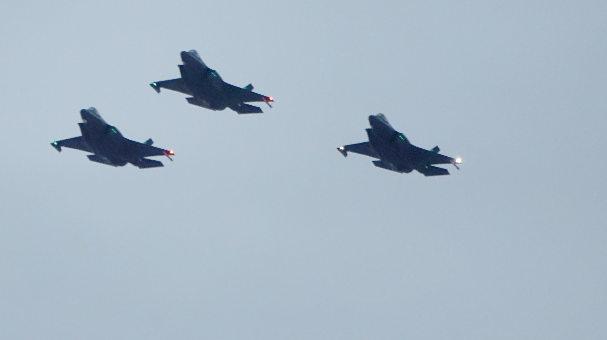I dag flÞy tre F-35 i formasjon som en nyttÄrsstjerne fra Evenes flystasjon over deler av Nord-Norge og Þnsket godt nytt Är.