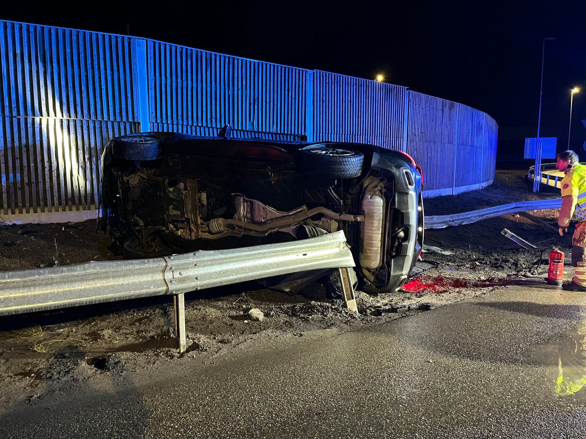 Det er store skader pÄ personbilen.