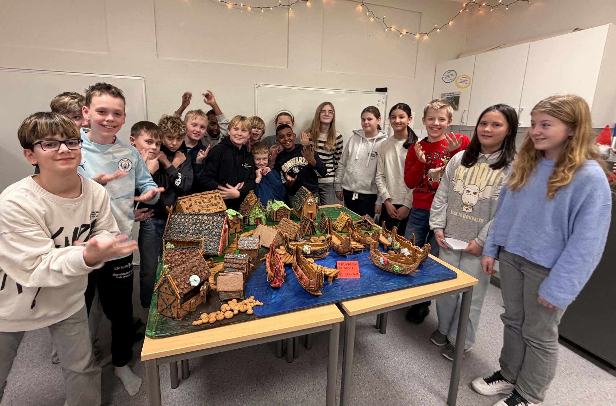 6b pÄ LillÄs skole gikk grundig til verks da de skulle gjenskape vikingbyen Kaupang i pepperkakeform.