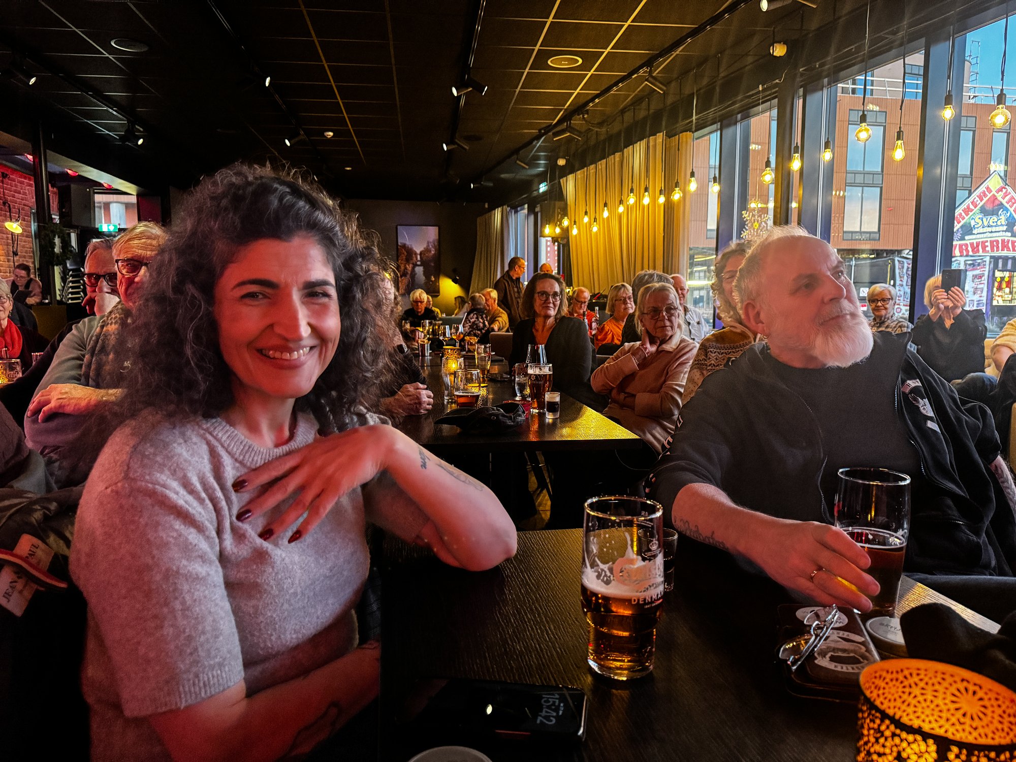 Det mÄ ikke nÞdvendigvis foregÄ langt pÄ natt for at folk skal kose seg i romjulstida. Det trenger ikke engang ha blitt ordentlig mÞrkt. Folk fant veien til utestedene som bÞd pÄ levende musikk og god stemning. Her er noen av dem vi traff pÄ vÄr vei, 3. juledag.