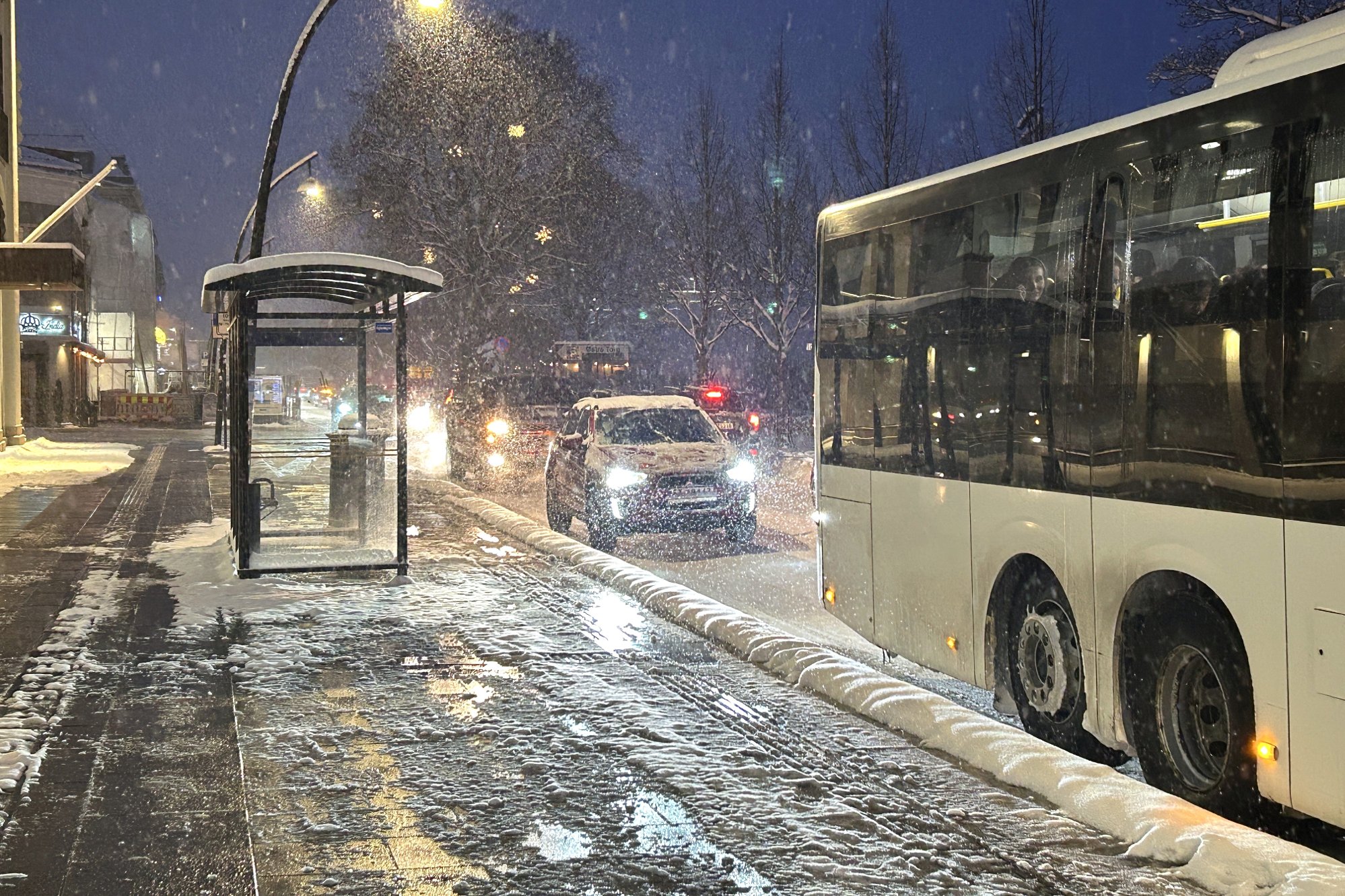 Trafikkuhell onsdag kveld. SvĂŠrt glatte kjĂžreforhold, melder politiet.