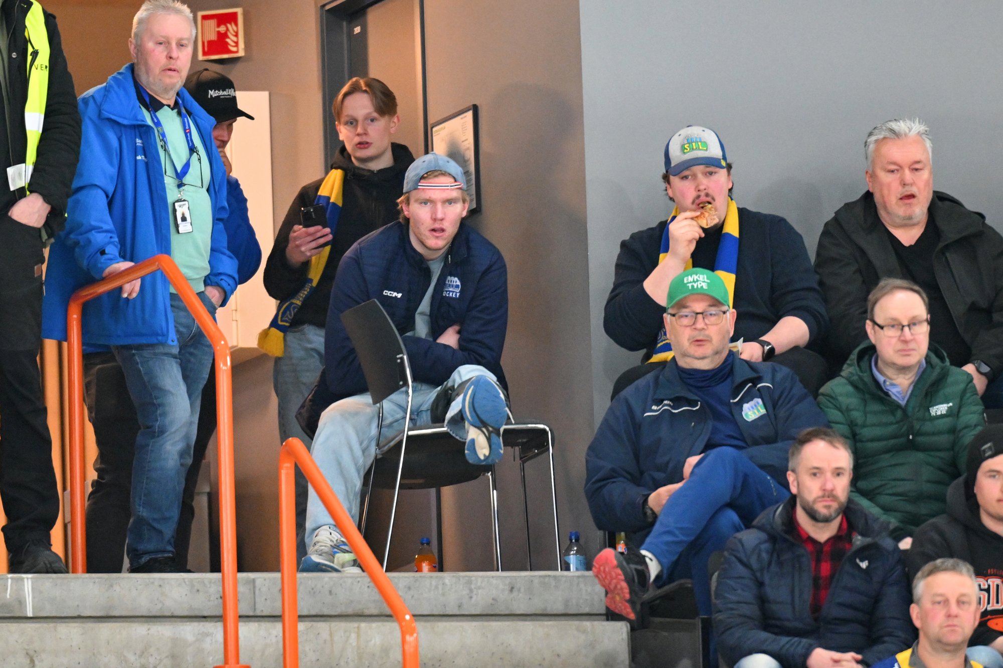 6. jan 18:42 Martin Johnsen (21) mÄ belage seg pÄ fire kamper pÄ tribunen etter en tÞff takling pÄ Ake Stakkestad. (HA 217b)