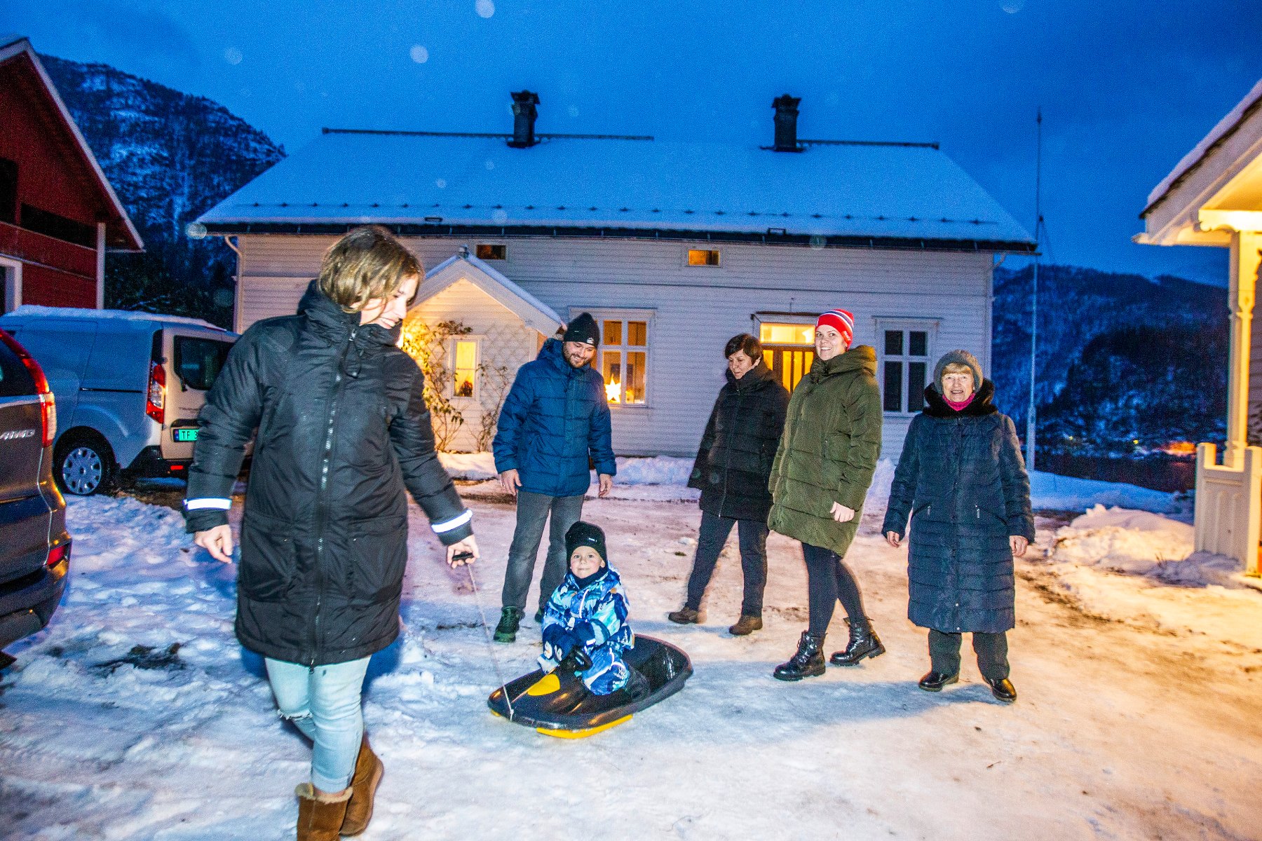 26. des 17:00 Herberget var ope hjÄ Gudrun og Halldis Folkedal. No gÄr den ukrainske familien mot si fyrste jol i Prestegarden. (Hordaland 113b)