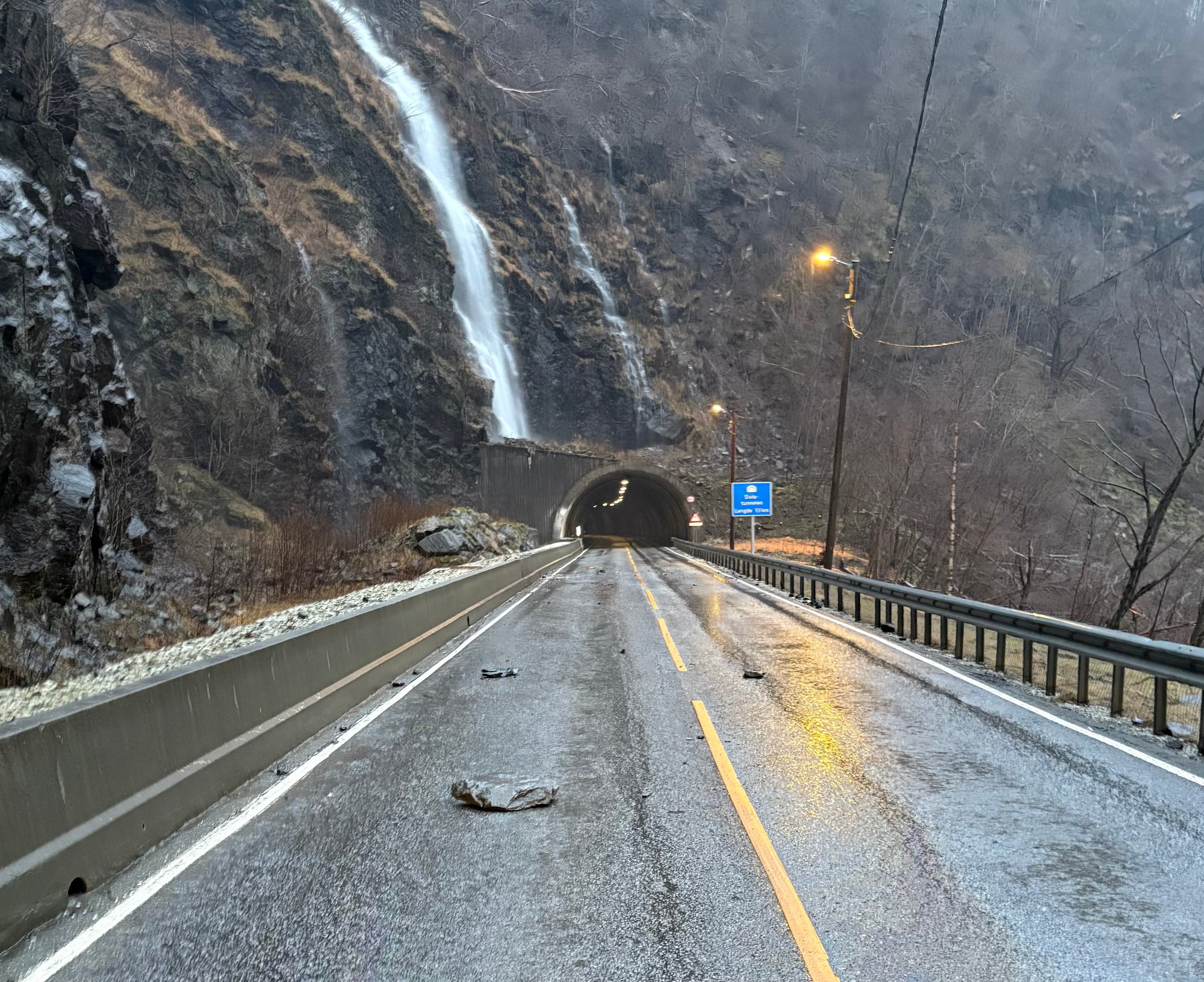 E16 er stengd ved Stalheim- og Sivletunnelen etter steinsprang. â Vegen vert straks opna, melder politiet i 10-tida.