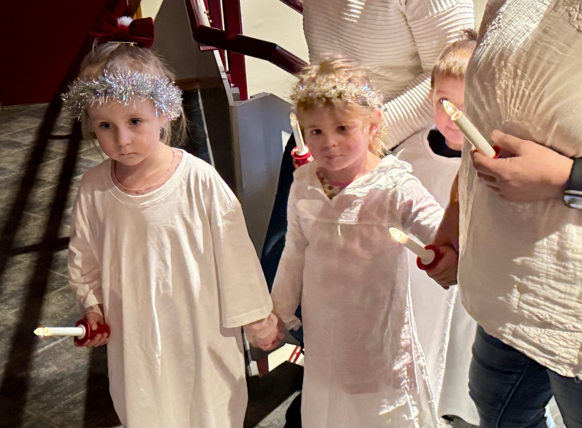 Samfunnshuset fyltes av sang og Santa Lucia-lys denne adventsmorgenen.
