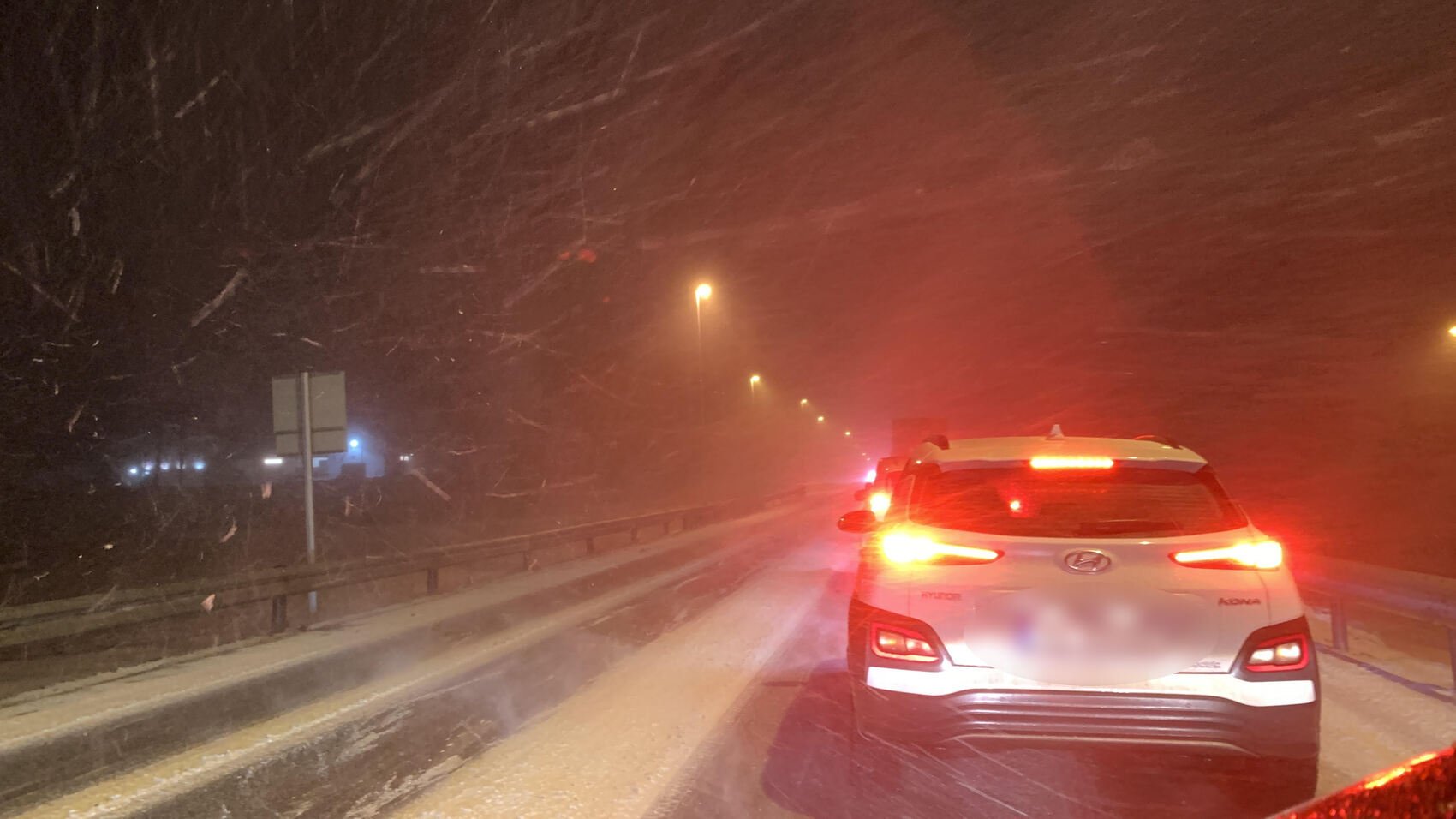 Mandag morgen er det snøfall og kraftig vind på Jæren.