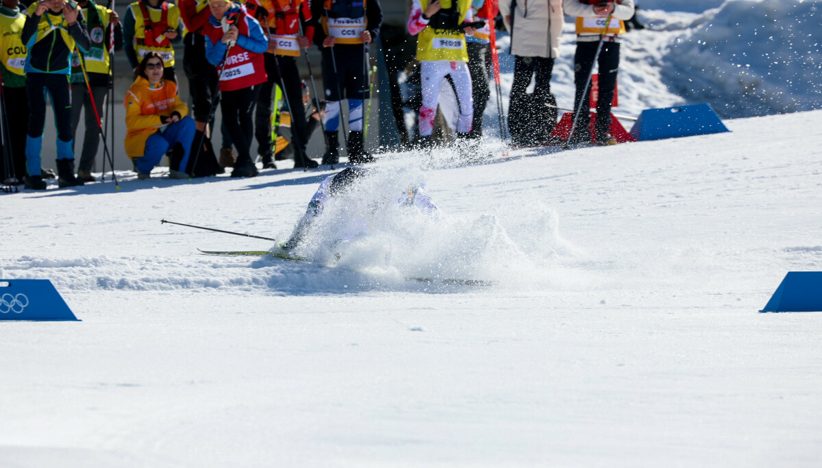 14. feb 11:55 KNALL OG FALL: Ebba Andersson falt to ganger under kvinnenes stafett i Val di Fiemme. Video: Sørø Olsen/Skingen/Dagbladet, Foto: Langsem/Dagbladet (Dagbladet)