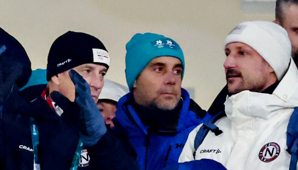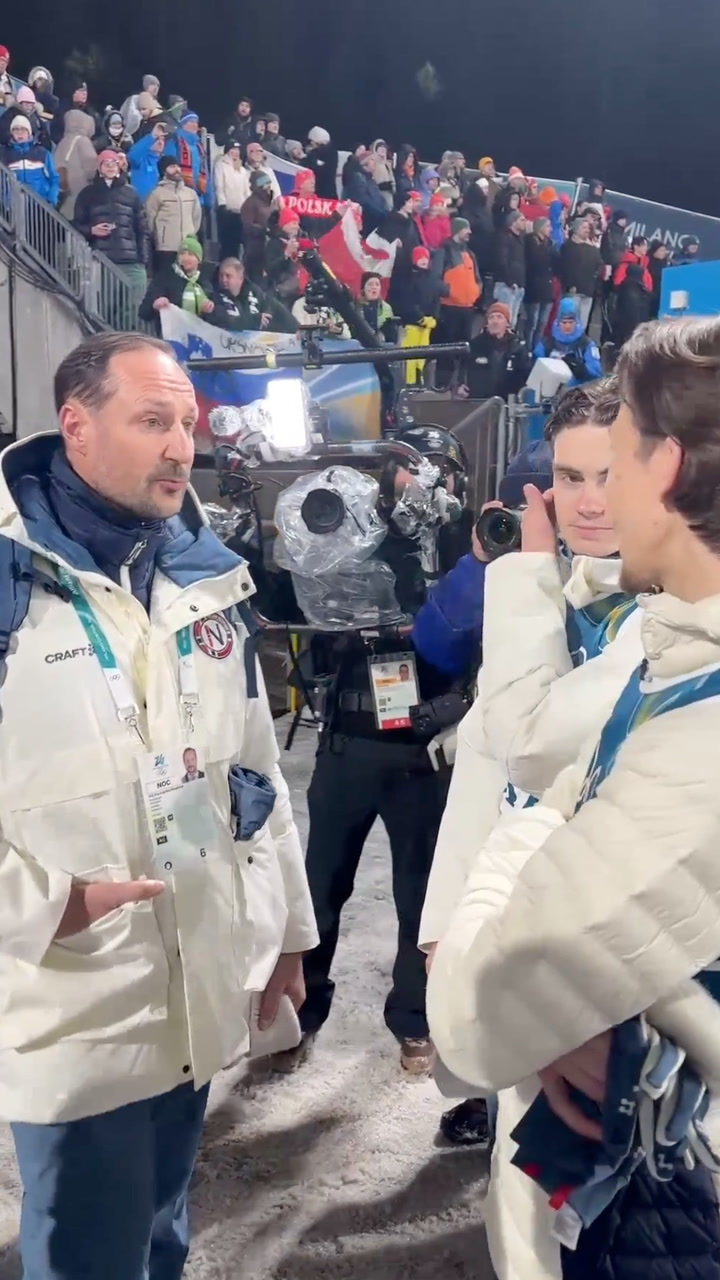 14. feb 20:18 STAS: Kronprins Haakon og Jonas Gahr Støre tok turen for å møte skihopperne og slå av en prat etter hopprennet i OL. Video: Bård Sørø Olsen / Dagbladet. (Dagbladet)